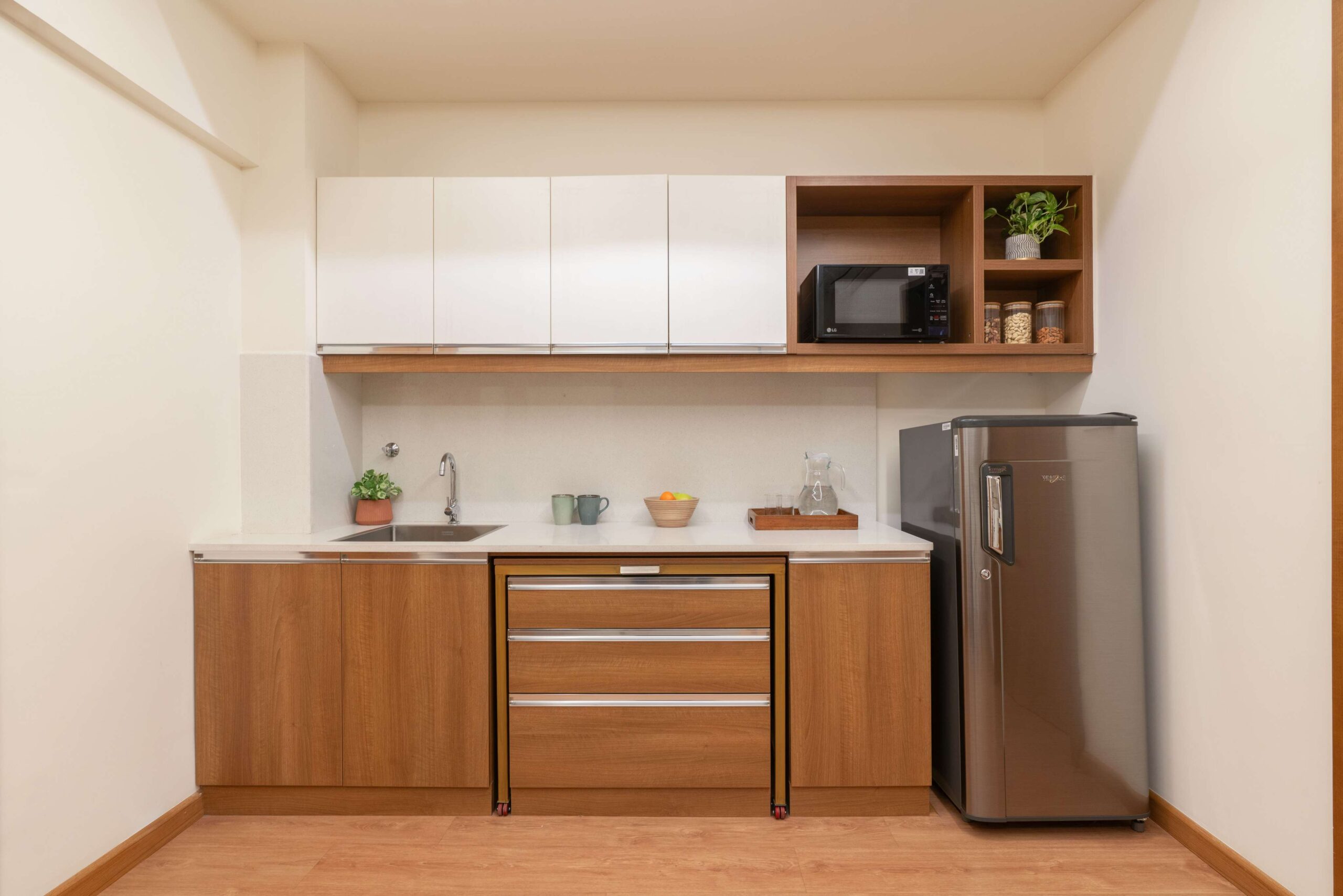 • • Pantry with Fridge, Microwave & Induction